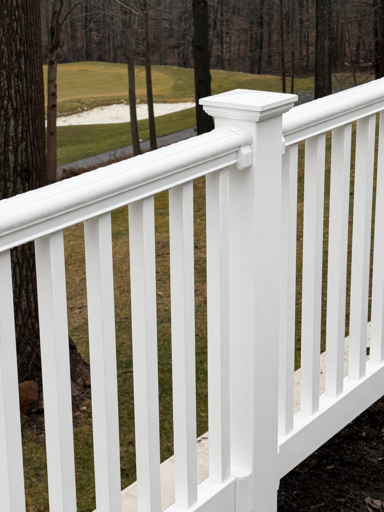 The Longevity 4000 Style railing combines safety and classic elegance. It’s Contoured top rail offers a secure grip and a refined, distinctive look – bringing timeless appeal to any space.